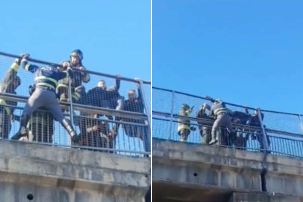 È accaduto a Malpensa, Varese, sulla Strada Statale 336, alle 12 di sabato scorso. Dopo le chiamate arrivate al 112, sul ponte sono giunte due volanti del commissariato di Gallarate, un equipaggio dei Carabinieri e i Vigili del fuoco, con il Centro operativo della Polizia stradale che ha inoltre inviato sul posto una pattuglia della sottosezione di Busto Arsizio e una del distaccamento di Magenta. Dopo diversi tentativi, gli agenti sono riusciti ad avvicinarsi all’uomo e a metterlo in condizioni di sicurezza: mentre una parte di loro era intenta a parlargli, un agente scelto della polizia di Stato si è arrampicato sul telone di un autocarro e da lì, saltando per circa un metro e mezzo, ha raggiunto la rete del ponte riuscendo a bloccare il tentativo di suicidio.