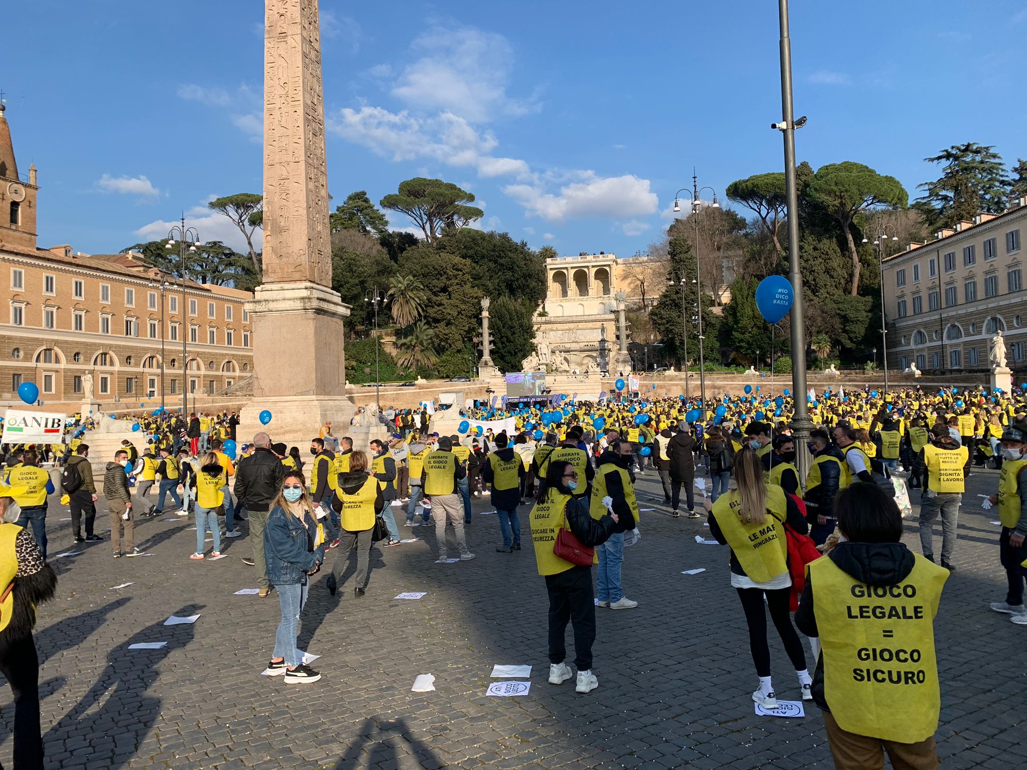 Due piazze storiche di Roma e Milano invase da lavoratrici e lavoratori del settore del gioco pubblico. Un comparto in ginocchio, stremato dalle reiterate chiusure delle attività, si è riversato in Piazza del Popolo e Piazza Duomo per gridare a gran voce, ma con estrema civiltà, la necessità impellente di riaprire. La partecipazione, in entrambe le città, è stata imponente e caratterizzata da una massiccia adesione al femminile. Si tratta infatti di una realtà che tira in ballo oltre 150mila lavoratori e circa 75mila imprese, fiaccate da un blocco che sta scaraventando tanti sul baratro del fallimento. Riuniti per la prima volta quindi i lavoratori di tutto il comparto per protestare sotto la bandiera di “Lavoratori del gioco legale” per chiedere a gran voce la riapertura immediata delle attività nelle regioni in regime di zona gialla, nel rispetto dei rigidi protocolli anti Covid già adottati da oltre 8 mesi e la convocazione di un tavolo di confronto tra governo, Regioni ed associazioni di categoria per trovare una soluzione ai diversi problemi che gravano sul settore tra i quali la questione territoriale e l’accesso al credito. I lavoratori rivendicano, come si legge in una nota, “la dignità di un comparto che rappresenta il presidio più efficace contro il gioco illegale a tutela dello Stato e dei cittadini“.