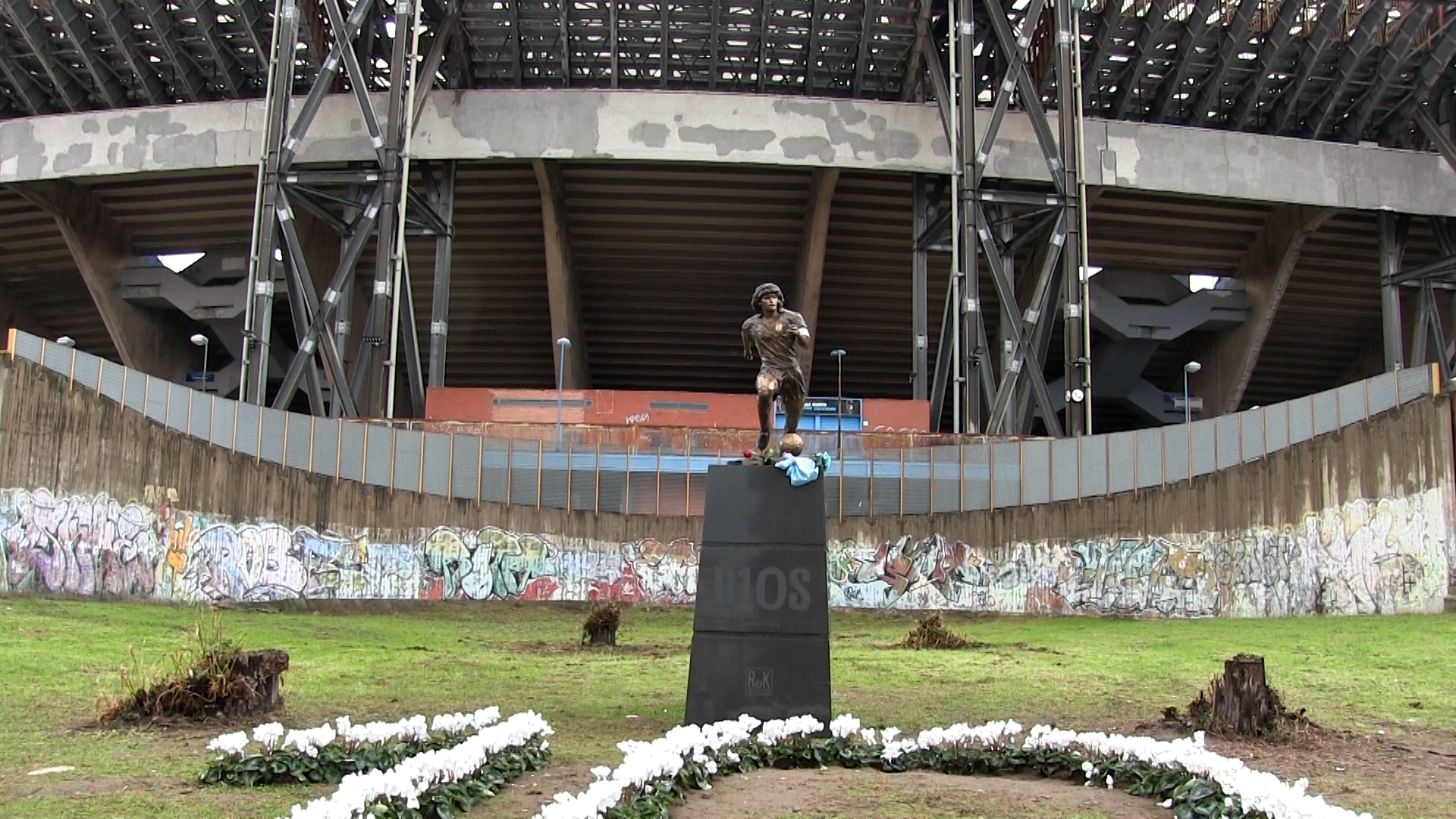 Sosia di Maradona, maglie di Maradona, sciarpe di Maradona, bandiere di Maradona, canti per Maradona, fiori per Maradona, lacrime per Maradona, sorrisi per Maradona, una statua per Maradona. È Maradona Day a Napoli. Soprattutto ai Quartieri Spagnoli e allo Stadio di Fuorigrotta che a Diego Armando Maradona è stato dedicato. A un anno dal 25 novembre del 2020, quando la morte del Pibe de Oro – improvvisa e a 60 anni – fece in pochi minuti il giro del mondo, monopolizzando notiziari e prime pagine dei giornali, è il giorno dell’omaggio e del ricordo. Una giornata agrodolce: ci si commuove e si canta. Un delirio atroce per i fanatici del campione argentino.