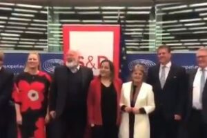 In pochi minuti è diventato virale un video che vede i Commissari del gruppo dell’Alleanza progressista dei socialisti e dei democratici (S&D) mentre cantano “Bella Ciao” al Parlamento europeo dopo aver ottenuto il via libera dell’assemblea. Un video vecchio di una settimana che ha indignato Marco Rizzo, segretario generale del Partito Comunista. “Adesso basta, non se ne può più – ha tuonato sulla sua pagina Facebook – Anche i commissari UE cantano ‘Bella Ciao’. Sono quelli che equiparano il comunismo al nazismo. Questa canzone è violentata ovunque. I Partigiani si rivoltano nella tomba. Vergogna! Fuori da UE, euro e Nato!”