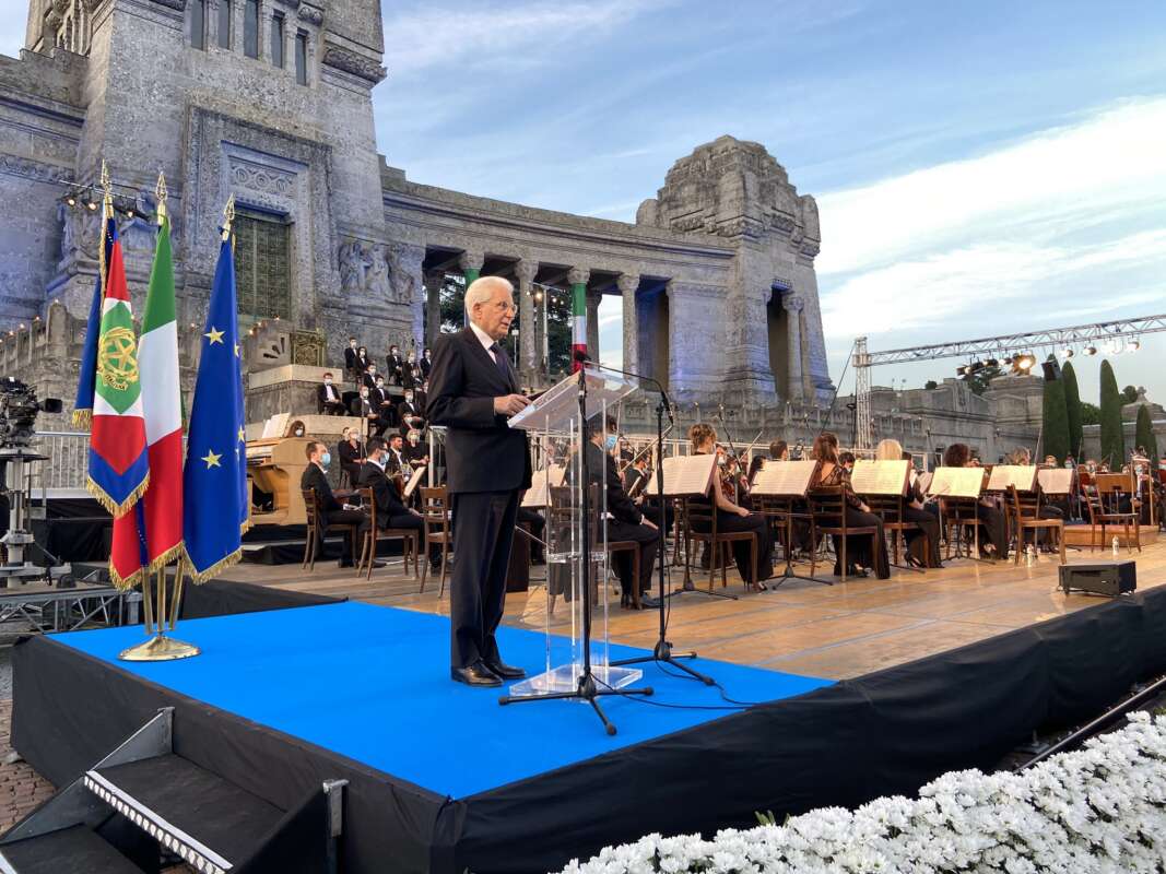 Accolto dal presidente della Regione Attilio Fontana e dal sindaco Giorgio Gori, Mattarella ha tenuto il suo discorso prima della lettura dell’Addio ai monti dai Promessi Sposi di Alessandro Manzoni e della Messa da Requiem di Gaetano Donizetti. Il presidente ha deposto una corona sulla lapide in onore alle vittime. “Qui a Bergamo, questa sera, c’è l’Italia che ha sofferto, che è stata ferita, che ha pianto. E che, volendo riprendere appieno i ritmi della vita, sa di non poter dimenticare quanto è avvenuto. La mia partecipazione vuole testimoniare la vicinanza della Repubblica ai cittadini di questa terra così duramente colpita”, ha detto il Presidente della Repubblica.