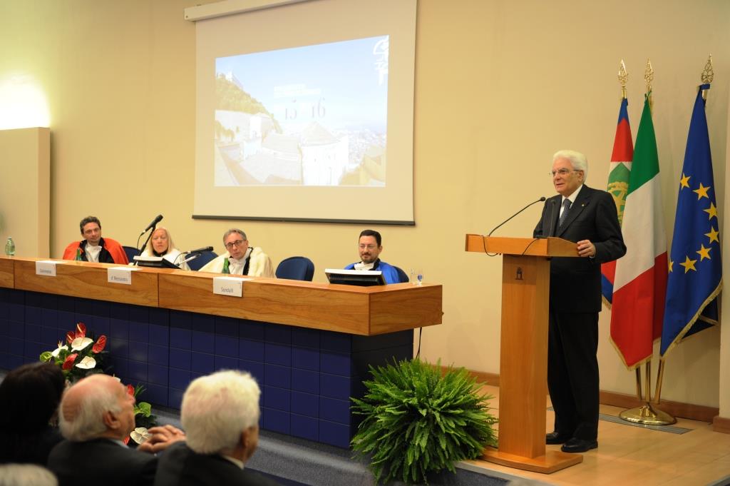 Al mattino Mattarella prese parte alla solenne cerimonia di inaugurazione dell’anno accademico dedicata al tema giuridico-costituzionale de “La Costituzione e i suoi cittadini” con la lectio inauguralis del costituzionalista Tommaso Edoardo Frosini, oggi direttore del Dipartimento di Scienze Giuridiche del Suor Orsola, e con la prolusione del Rettore Lucio d’Alessandro che prima della cerimonia aveva guidato il presidente Mattarella in una lunga visita all’interno della cittadella monastica di Suor Orsola.