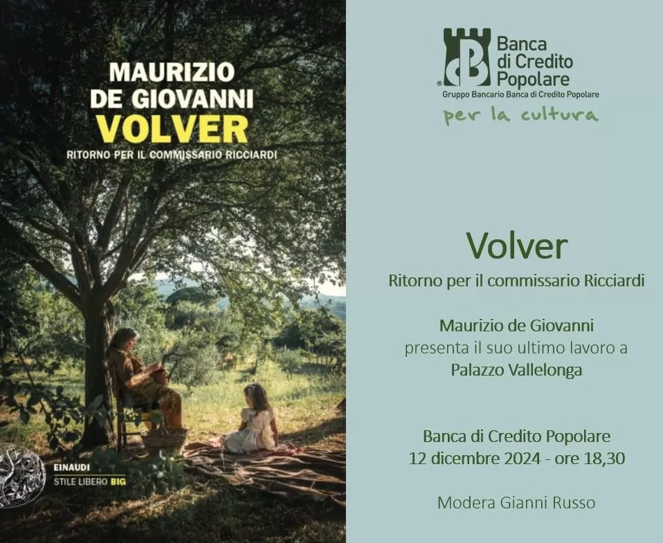 Maurizio de Giovanni sarà l’ospite del prossimo appuntamento culturale a Palazzo Vallelonga, in programma domani, giovedì 12 dicembre (ore 18.30) nella storica sede centrale della Banca Popolare di Torre del Greco (corso Vittorio Emanuele, 92). Lo scrittore partenopeo, accolto dal Presidente della BCP Mauro Ascione, parlerà con il giornalista Gianni Russo del suo ultimo libro: “Volver – Ritorno per il commissario Ricciardi”, edito da Einaudi. L’ingresso è gratuito fino a esaurimento posti.