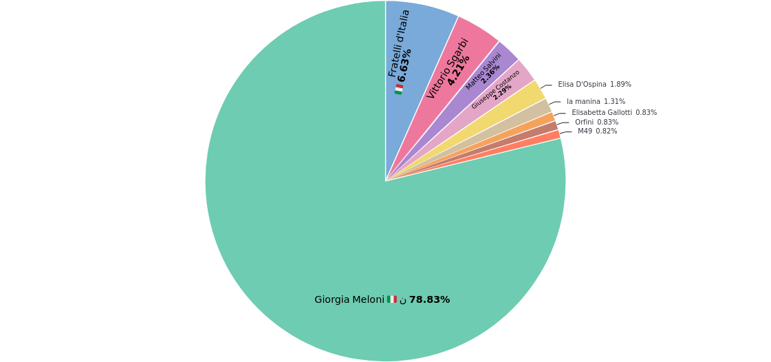 Le Menzioni sono tutte per Meloni e fratelli d’Italia, ma anche per Sgarbi che ha provato a difendere la Leader mentre Salvini continua a non apparire come era solito in precedenza.