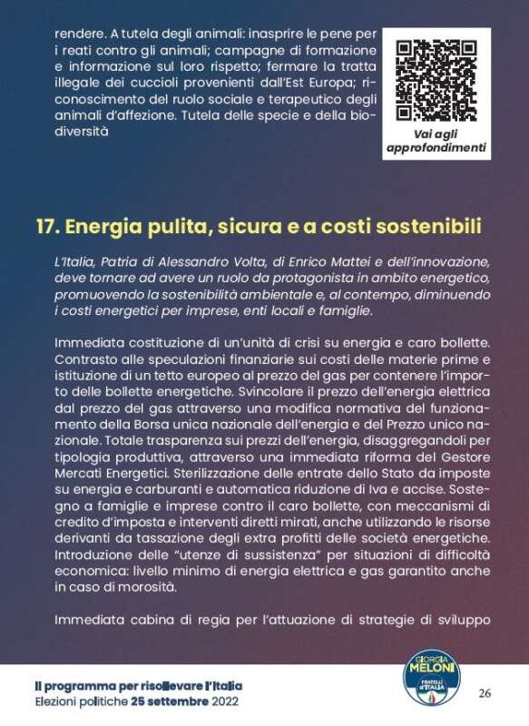 Eppure basta leggere il programma elettorale di Fratelli d’Italia e arrivare a pagina 26 per leggere quanto segue: “Sterilizzazione delle entrate dello Stato da imposte su energia e carburanti e automatica riduzione di Iva e accise”.