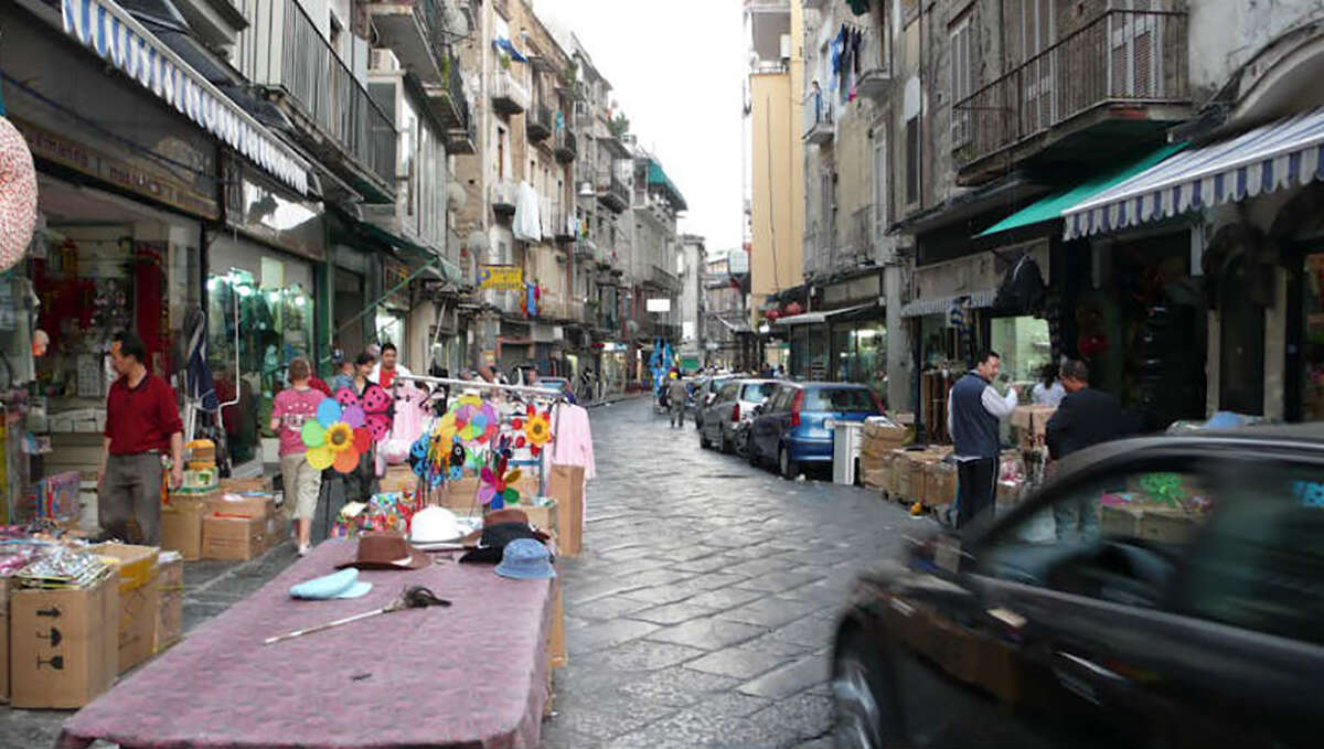 Chi senza avere diritti, ci insegna i doveri. Siamo tra le bancarelle del mercato della Maddalena, è una distesa di colori, stoffe, merce di ogni tipo. Ce ne sono tantissime di bancarelle, duecento più o meno e dietro i piccoli tavoli di legno sgangherati ci sono i venditori ambulanti che cercano di sbarcare il lunario. Non sono soli, c’è la camorra che controlla il quartiere, c’è la camorra che impone le sue regole, c’è la camorra che chiede il pizzo. Sì, anche agli ambulanti che hanno minuscole bancarelle. Qualcosa guadagnate? E allora pagate. Pagate e zitti.