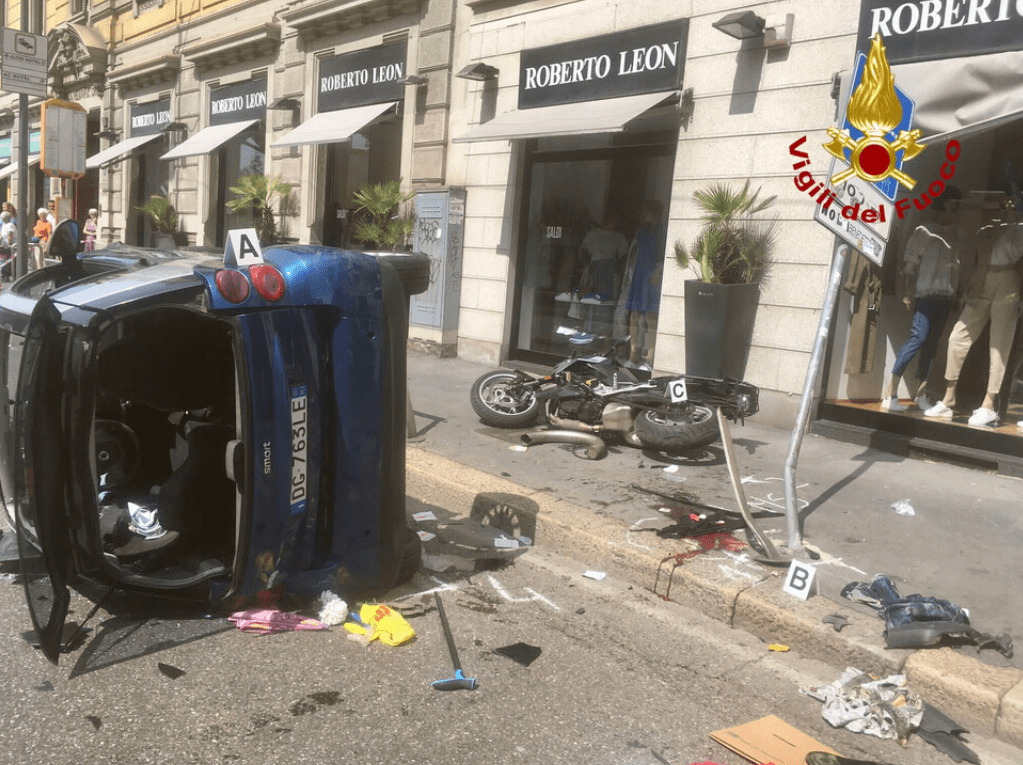 La dinamica dell’incidente – Dalle primissime ricostruzioni, sembra che una Smart sia uscita da una via laterale e si sia immessa a grande velocita’ in Corso 22 marzo. Ha perso il controllo del veicolo e, ribaltandosi. ha coinvolto nell’incidente una ciclista. Le due persone nella Smart sono state estratte dai vigili del fuoco dall’auto e soccorse in codice giallo.