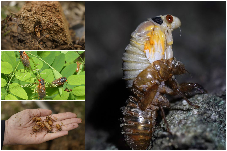 L’INVASIONE – Dopo più di un decennio sottoterra, le cicale emergono in superficie una volta che il terreno raggiunge i 64 gradi Fahrenheit ed è inzuppato dalla pioggia. Le persone al proprio risveglio si troveranno milioni di cicale che ricoprono automobili, case, alberi. Infatti le cicale si arrampicano su qualsiasi superficie verticale che trovano. Dopo poco si liberano della propria pelle e solo dopo aver concluso la fase della muta, iniziano una rumorosa “caccia ai compagni”. Infatti i maschi iniziano a cantare fino a quando una cicala femmina non sbatterà le ali: è il segnale che il corteggiamento è andato a buon fine. La caccia ai compagni dura per due o quattro settimane prima della moro morte.