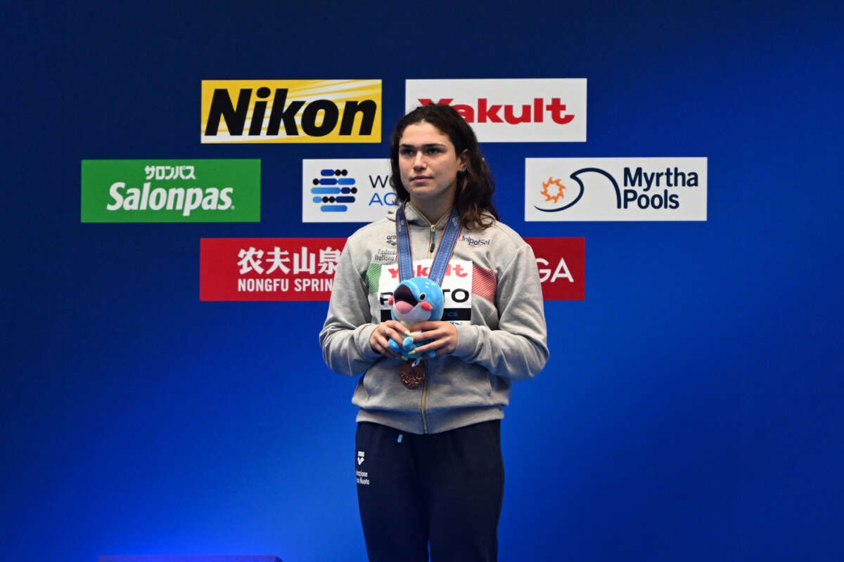 Benedetta Pilato nell’ultimo giorno di gare ai Mondiali di Fukuoka regala un’ultima gioia all’Italia,medaglia di bronzo, la sesta medaglia in vasca a Fukuoka. Il terzo posto nei 50 rana, alle spalle dell’imprendibile Ruta Meilutyte e della statunitense Lilly King, rappresenta la terza medaglia consecutiva in tre edizioni iridate.