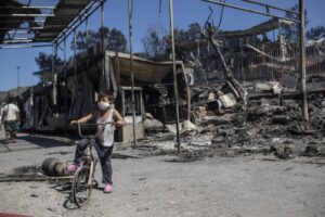 La vita a Moria è sempre stata complicata, l’accertamento di alcuni casi di infezione da covid19 l’aveva resa impossibile, tensioni e paure interne, misure rese restrittive fino a diventare insopportabili. Sono gli stessi rifugiati a essere sospettati degli incendi, e il campo distrutto non deve essere ricostruito, secondo Skai Stratos Kytelis, sindaco di Mytilene e portavoce della comunità dell’isola. Gli abitanti non ci stanno più, non vogliono che l’isola paghi il prezzo di un compromesso tra la Turchia e l’Europa, perché Moria è nata in virtù di questo, accontentare Erdogan, alleggerendogli il carico. Salvo poi abbandonare il fardello agli isolani, che per tanto tempo hanno accolto, aiutato. Moria non era e non poteva essere più un affare di Lesbo, della solidarietà, dei volontari. Doveva essere affrontata come un’incombente questione umanitaria.