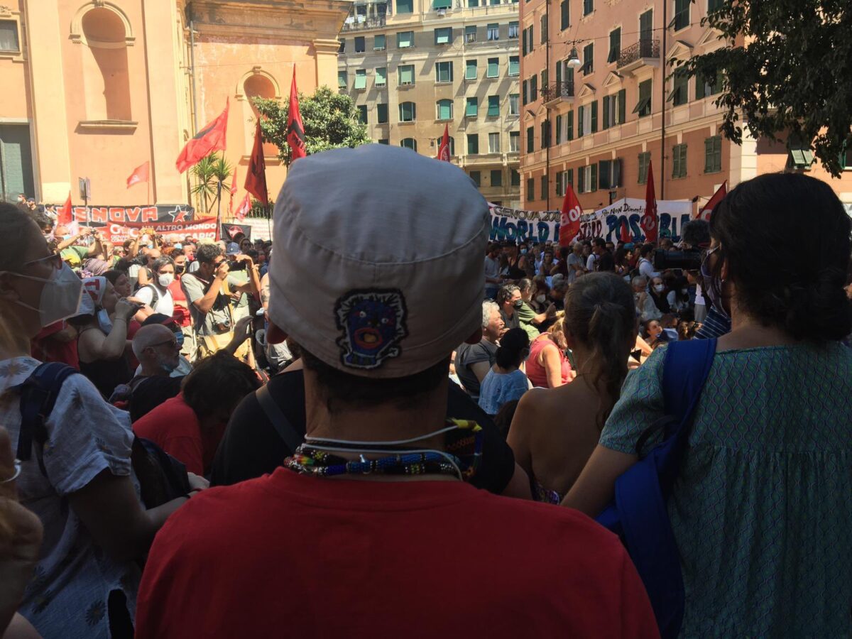 Poi è partito il coro “Carlo è vivo e lotta insieme a noi”. Uno striscione chiede la “libertà per Luca” (Finotti), ultimo ancora in carcere perché condannato per i reati di ‘devastazione e saccheggio’. Un altro striscione, in inglese, richiama la parola d’ordine di vent’anni fa “un altro mondo è ancora possibile”. Poco prima delle 16 sul palco era salito per un breve saluto per Carlo, anche Manu Chao, che a vent’anni dal celebre concerto che fece il 19 luglio 2001 ha replicato ieri sera ai Giardini Luzzati di Genova.