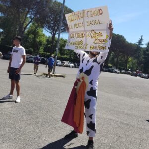 Tra i tanti con sciarpe, cappellini, magliette, gagliardetti da farsi autografare ci sono anche quelli che vanno un po oltre e si dichiarano completamente a Mourinho. “Gli indiani hanno la mucca sacra – si legge in questo cartello di un tifoso eccentrico – Noi lo Special One”. È già iniziata la Mou-mania.