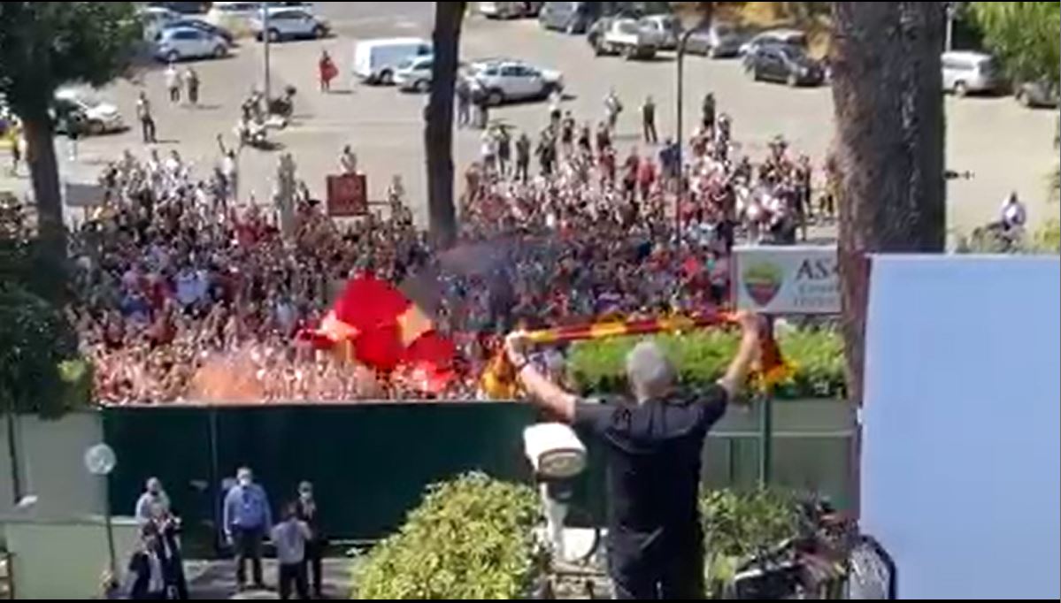 Accoglienza da brividi per lo Special One che dopo il lungo corteo con la scorta della Polizia di Stato si è affacciato dalla terrazza del centro di allenamento giallorosso. Urla, cori e bandiere e fumogeni. E Mourinho si affaccia alzando al cielo la bandiera giallorossa. Uno scambio di affetto tra l’allenatore e i tifosi che ripongono in lui gran parte delle speranze per una stagione più competitiva.