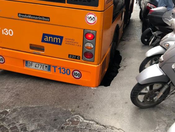 Una voragine talmente grande da bloccare un autobus dell’Anm di Napoli. È successo questa mattina in via Aniello Falcone, nel quartiere Vomero: un mezzo in servizio sulla linea 128 è sprofondato in una buca facendo sobbalzare i passeggeri. A renderlo noto è il sindacato Usb, che ha anche fornito dettagli sull’accaduto.