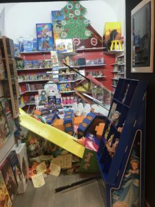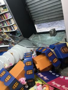 In mille pezzi la vetrata che dà sulla stanza dei bambini dove Anna e Andrea, i due ragazzi titolari della libreria fanno le attività con i bambini. I due stamattina hanno trovato scaffali distrutti, libri e gadget divelti, quel loro piccolo gioiello culturale ridotto in brandelli. Il frutto della loro fatica distrutto.