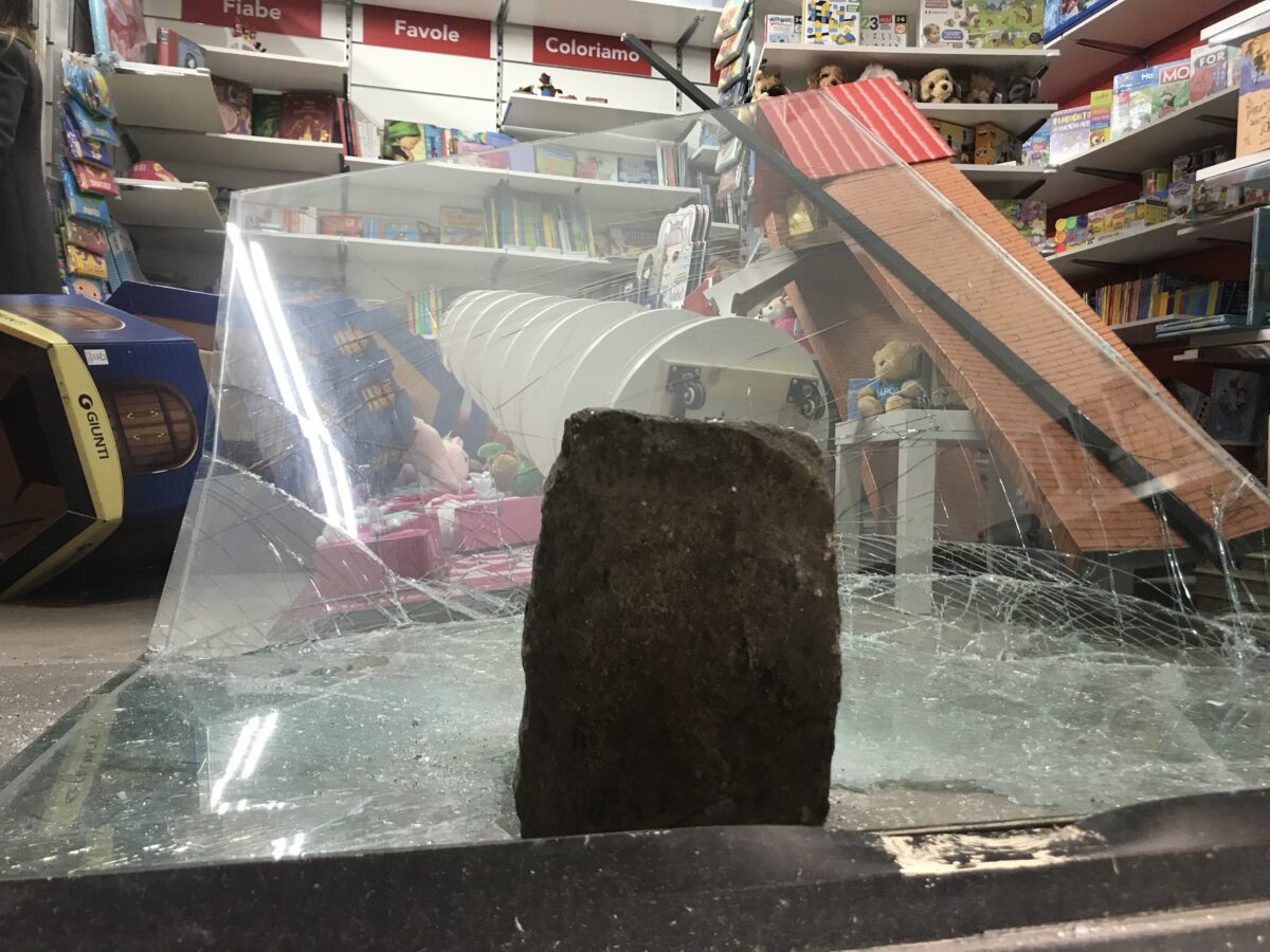 In mille pezzi la vetrata che dà sulla stanza dei bambini dove Anna e Andrea, i due ragazzi titolari della libreria fanno le attività con i bambini. I due stamattina hanno trovato scaffali distrutti, libri e gadget divelti, quel loro piccolo gioiello culturale ridotto in brandelli. Il frutto della loro fatica distrutto.