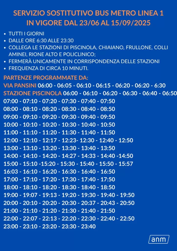 «Le tre stazioni saranno aperte dalle 6:00 alle 8:00 del mattino e dalle 21:30 alle 23:30 di sera, perché in quelle fasce i treni devono comunque uscire e rientrare dai depositi. In più, è previsto un servizio di bus ogni 10 minuti, che collega le stazioni chiuse a quella del Policlinico, la prima aperta in direzione centro. Non è una sostituzione integrale fino a Garibaldi – sarebbe impossibile – ma è una soluzione rapida per ricollegare i nodi essenziali».