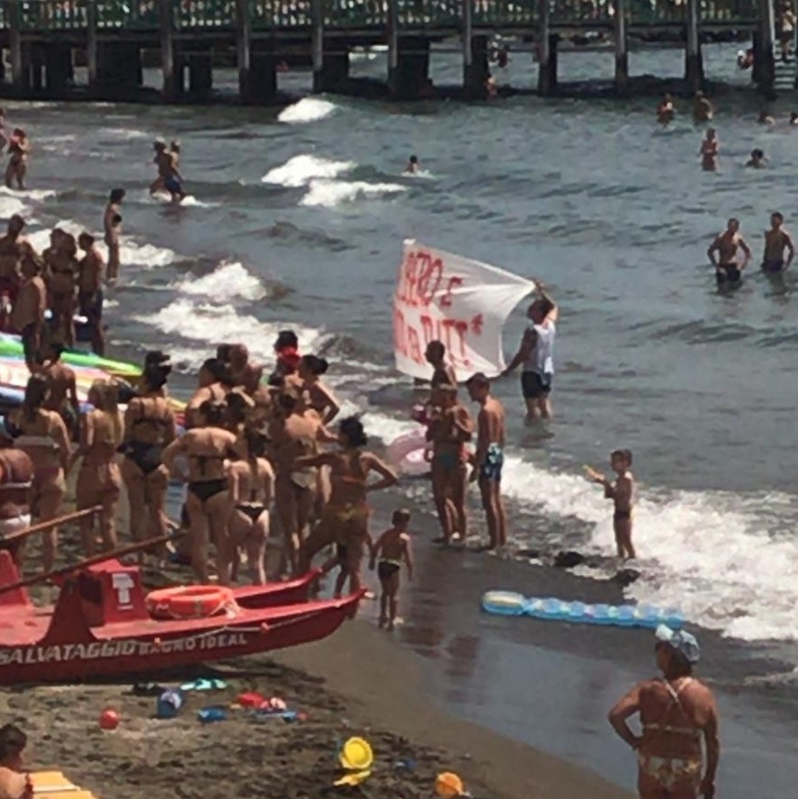 La protesta è stata animata anche da cori e dall’esposizione di alcuni striscioni. Numerose le critiche dei bagnanti ospiti del lido stamattina, che hanno denunciato il fatto definendola alla stregue di una “invasione”.