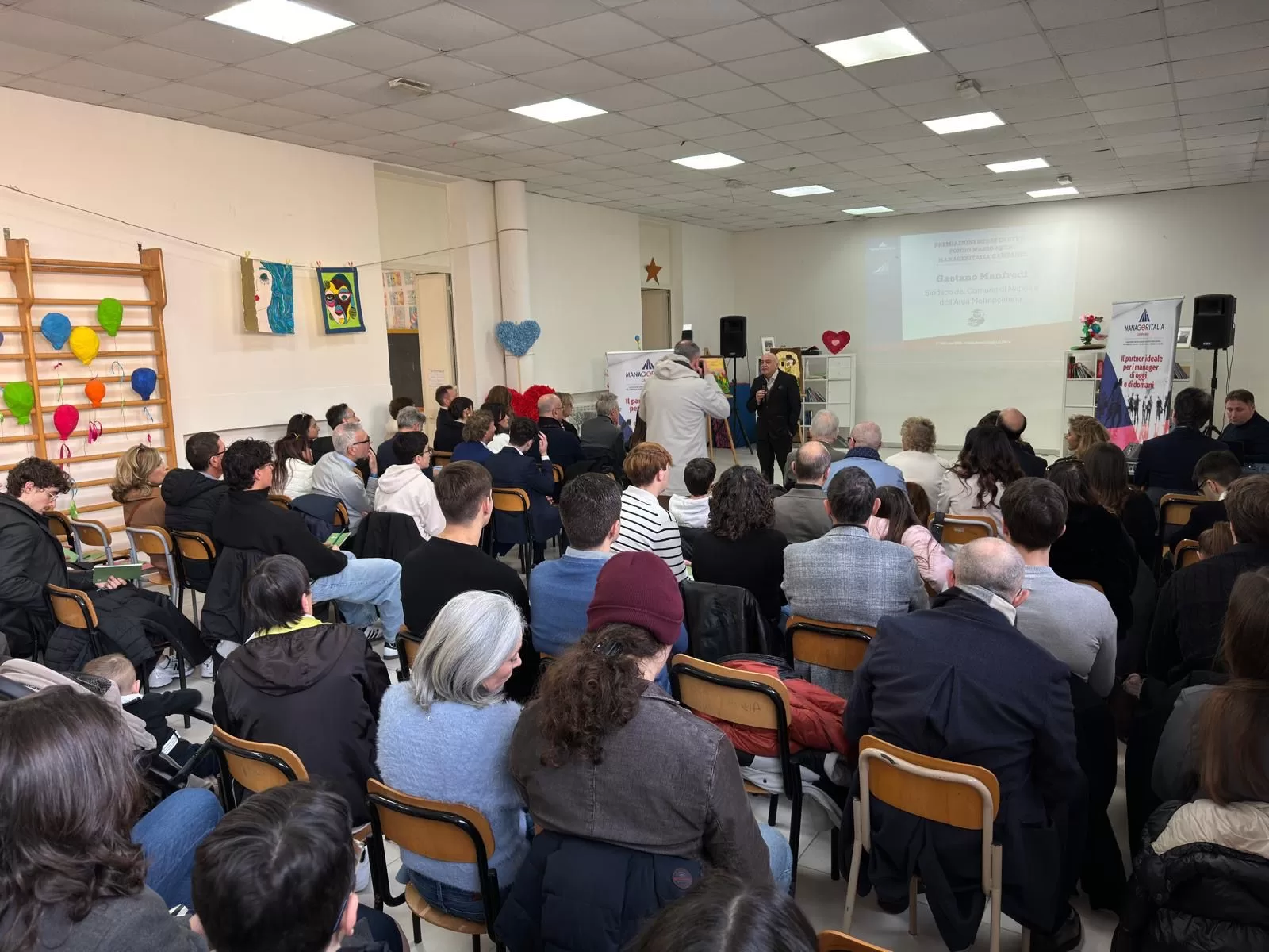 «Queste 74 borse di studio rappresentano molto più di un riconoscimento economico: sono un segnale di fiducia verso i giovani della nostra regione. Ricordo che oltre una decina di anni fa, quando abbiamo iniziato, erano circa una ventina. Abbiamo, quindi, aumentato di tanto la presenza su queste tematiche, che deve essere sempre di più e ovunque», ha dichiarato il Presidente Turiello. «Premiamo ragazze e ragazzi che con impegno, sacrificio e passione hanno dimostrato che il talento, se coltivato con responsabilità e determinazione, può diventare una leva straordinaria di crescita personale e collettiva. Oggi siamo in questo splendido istituto, in cui si dà supporto didattico ai ragazzi in fase di doposcuola. Portiamo qui i nostri figli per far capire loro che i punti di partenza devono essere gli stessi. Infatti, come Manageritalia Campania crediamo fortemente nel valore del merito e nel dovere di accompagnare le nuove generazioni nel loro percorso di formazione, affinché possano diventare protagoniste consapevoli del futuro del territorio e del Paese».