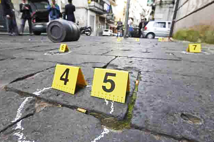 82 proiettili esplosi in pochi minuti intorno alle 19 di mercoledì 17 gennaio in corso Arnaldo Lucci, angolo via Toscano. 82 proiettili per dimostrare che adesso comandano loro, soprattutto dopo l’agguato, avvenuto pochi istanti prima, al 18enne Giuseppe Nicola Moffa, la cui famiglia è coinvolta secondo gli inquirenti nello spaccio di droga. 82 proiettili partiti da almeno due pistole in una zona, tra piazza Mercato e le Case Nuove, dove, strano a dirlo, non ci sono telecamere pubbliche, nonostante i ripetuti annunci degli ultimi anni e dei ministri dell’Interno di turno. E dove non ci sono nemmeno telecamere private perché la camorra ‘consiglia’ ai commercianti di non affidarsi alla videosorveglianza. 82 proiettili esplosi in pochi minuti nella terza città d’Italia, Napoli, dove si può morire per nulla (da Annalisa Durante a Francesco Pio Maiomone e Giovanbattista Cutolo sono passati 20 anni… di chiacchiere). Uno di questi 82 proiettili ha raggiunto una innocente, una donna che si trovava (non per sua sfortuna e non al posto sbagliato nel momento sbagliato) in strada quando i pistoleri riconducibili, sempre secondo gli investigatori, alla famiglia Marigliano, hanno deciso di fare l’azione eclatante, la stesa infinita sotto casa Moffa.