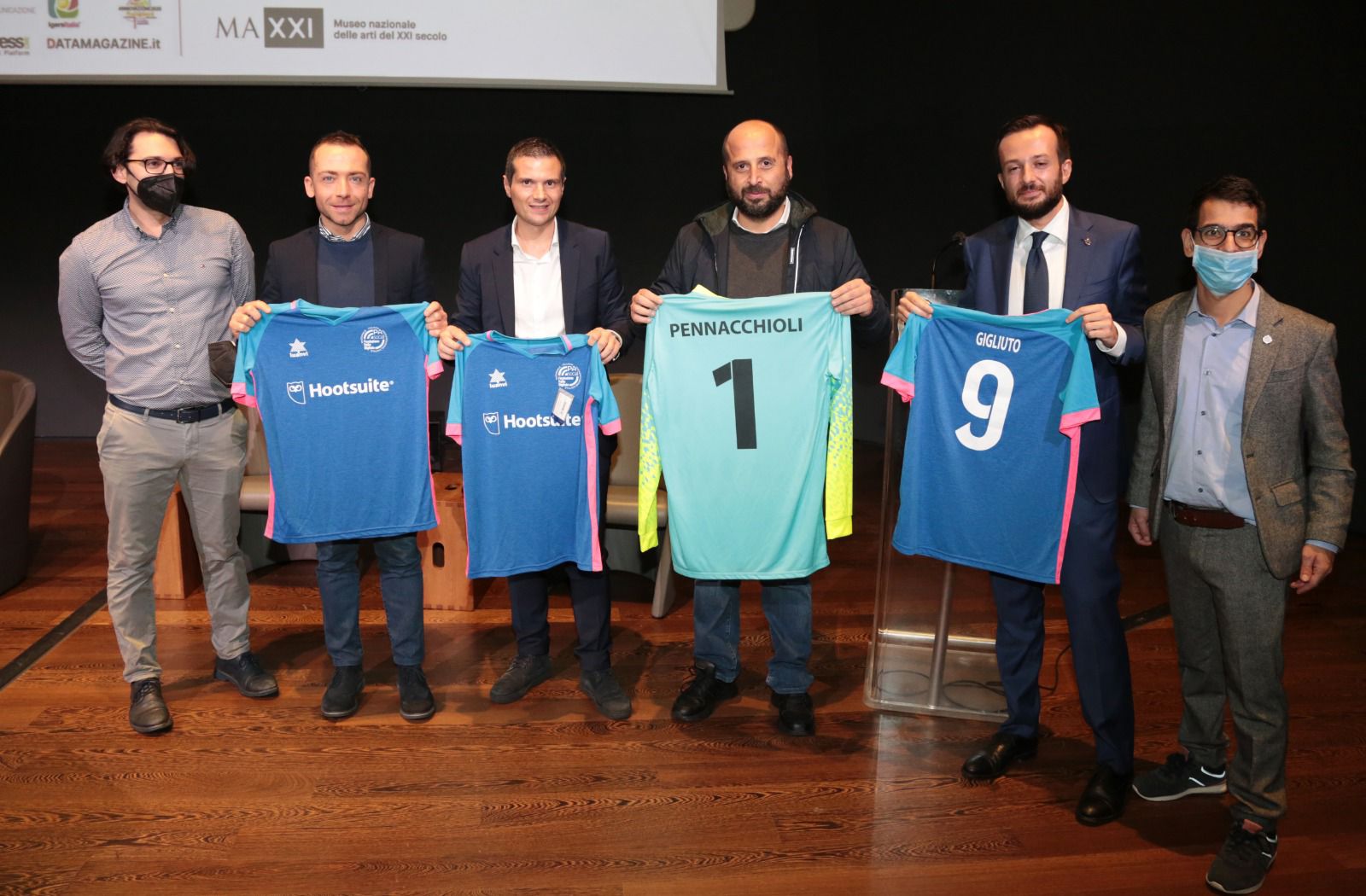 Alla presentazione di oggi al Maxxi hanno partecipato Francesco Di Costanzo (presidente PA Social e Fondazione Italia Digitale), Livio Gigliuto (direttore Osservatorio nazionale sulla comunicazione digitale e vice presidente Istituto Piepoli), Stefano D’Orazio (Regional Director Italy Hootsuite), Matteo Marani (presidente Museo del Calcio di Coverciano), l’ex calciatore e procuratore Simone Pepe, l’Onorevole Roberto Rossini (segretario Commissione Difesa Camera dei Deputati e membro Nazionale Parlamentari), Andrea Pennacchioli (giornalista La7), il team organizzativo formato da Roberto Zarriello (team manager), Leonardo Imparato (allenatore), Gianluca Garro (responsabile comunicazione), Domenico Bonaventura (ufficio stampa e comunicazione), Mirko Palmieri (event manager), Marco Sicbaldi (comunicazione).