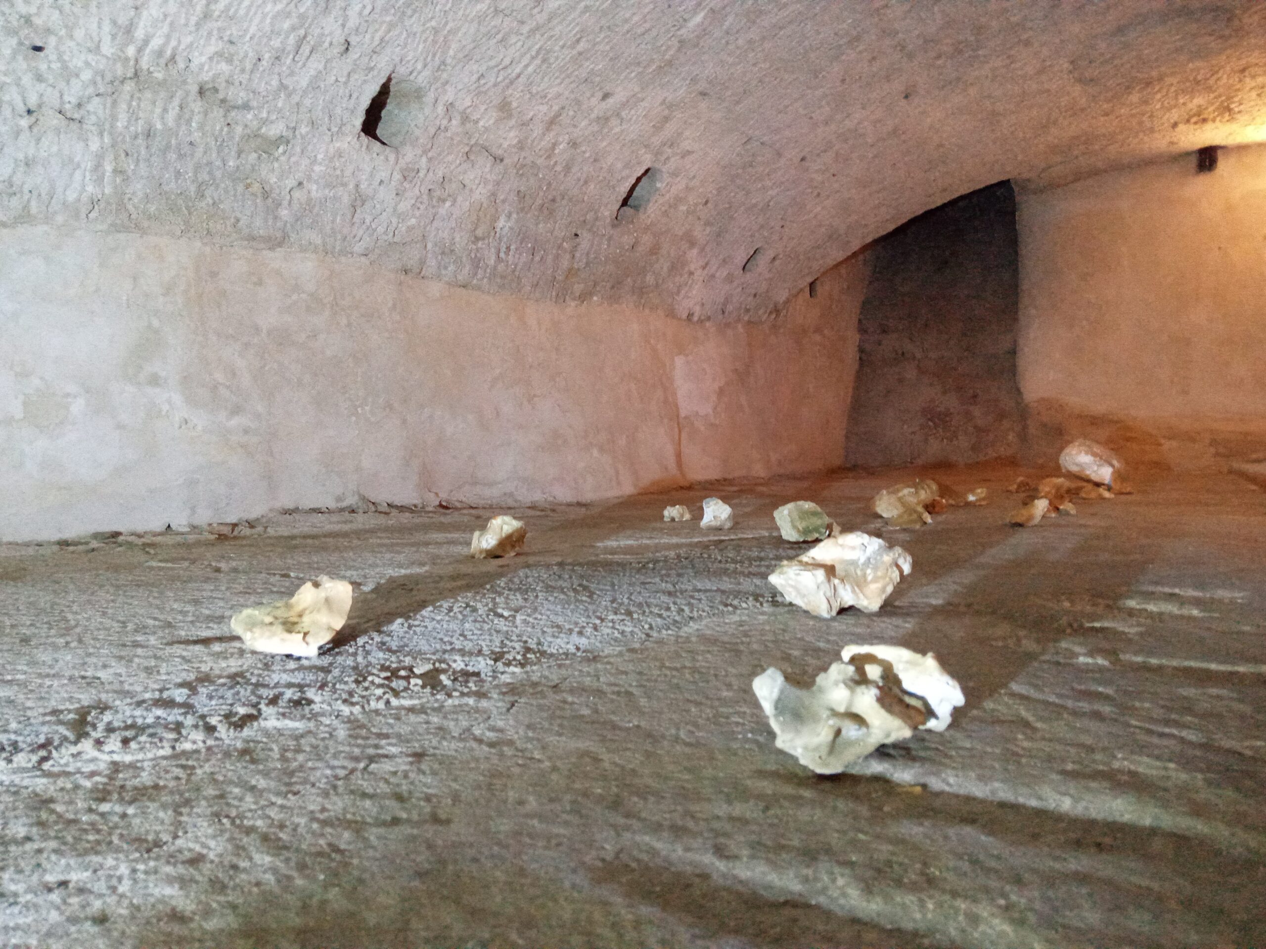E ancora: “L’installazione sembra emergere dalla stessa pietra che compone la struttura architettonica, pietra che sembra avere inglobato le esistenze delle sue residenti, apparse per frammenti nell’installazione dell’autrice. Luisa Corcione rende nuovamente presenti con l’arte queste figure sparite nell’autoisolamento dalla società, scelta che nella pratica spirituale si connette impalpabilmente, e in maniera incomprensibile ai più, alla sfera dell’impegno pubblico. La performance della danzatrice Francesca Fogliano su coreografia di Fabrizio Varriale, ricuce la frammentarietà del loro passaggio e diviene ulteriore testimonianza della volontà di indagare la percezione del concetto attuale di clausura e quello di arte, nelle sue più tangibili ed effimere forme”.