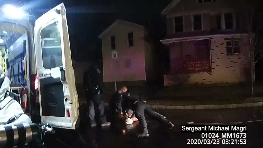 Nel video si vede comunque molto agitato. Gli agenti lo hanno incappucciato con la cosiddetta maschera “antisputo”, una sorta di cappuccio usato per proteggere i poliziotti dalla saliva delle persone fermate, soprattutto in tempi di pandemia. Prude dice che il cappuccio non gli permette di respirare. Un agente invece lo colpisce, sbatte la sua faccia a terra e con due mani gliela tiene premuta contro l’asfalto. Un altro gli mette un ginocchio sulla schiena. Il 30enne geme e grugnisce prima di cominciare a vomitare. Poi resta senza coscienza.