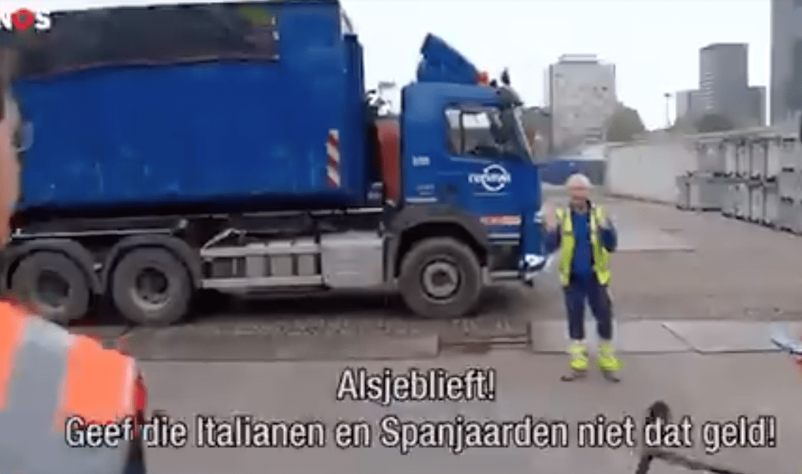 “Non dia soldi a italiani e spagnoli”. “No, no. Ne prendo nota”. Botta e risposta tra un netturbino e il premier olandese Mark Rutte sugli aiuti richiesti da diversi paesi dell’Unione Europea in seguito all’emergenza coronavirus.
