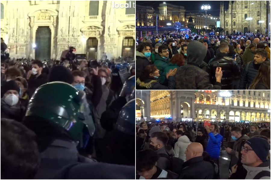 Ben diverso il clima in piazza Duomo. Diverse centinaia le persone presenti, con un gruppo che ha anche tentato di dar vita a un corte non autorizzato in via Torino, una delle strade delle shopping più note e frequentante del centro cittadino.