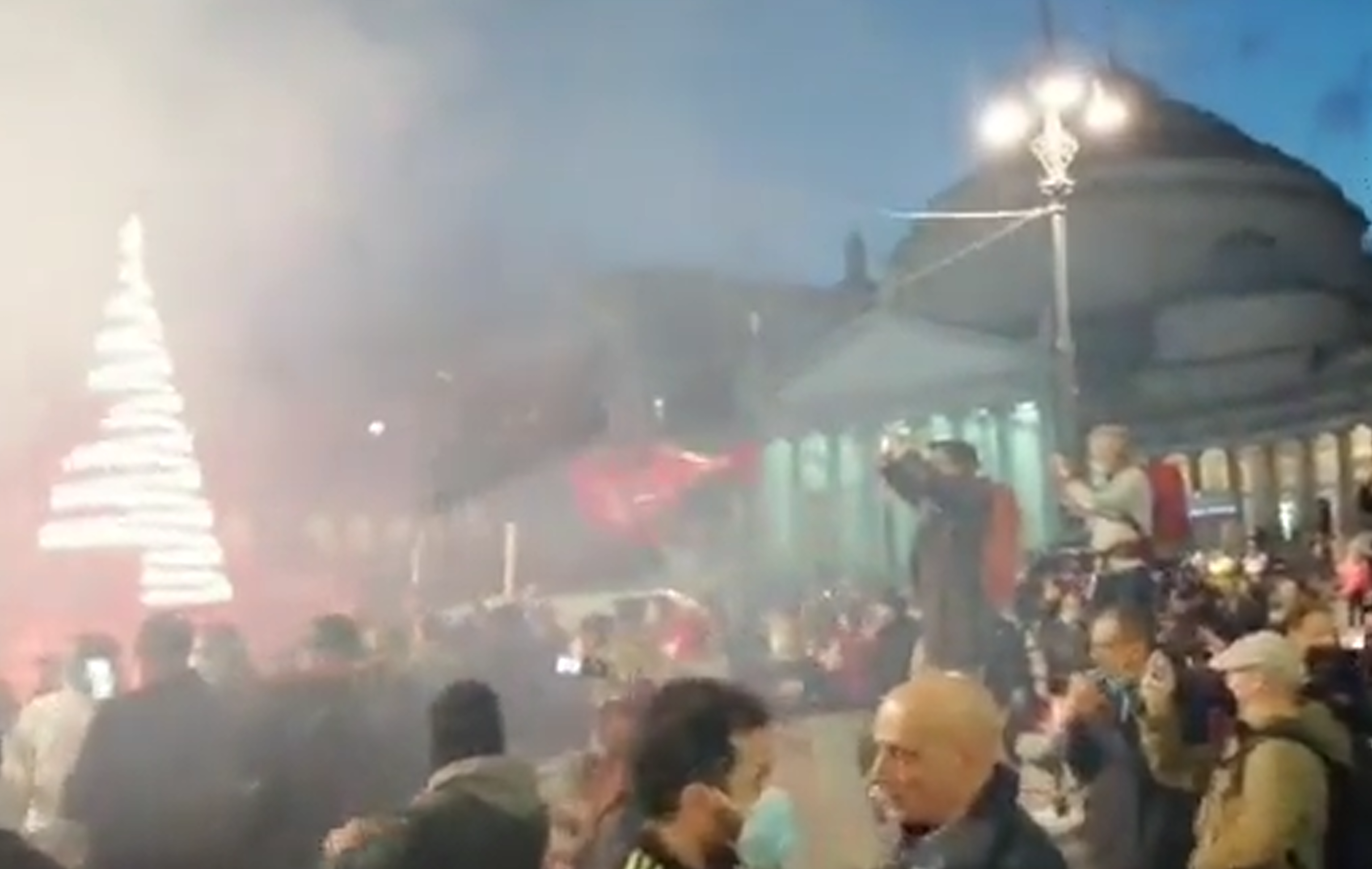Poi il corteo si è fermato a Piazza Dante in sit in. Altre persone si sono aggiunte fino ad arrivare a circa 300 partecipanti. In piazza gli organizzatori hanno detto che il 17 novembre prossimo i rappresentanti dei movimenti “no green pass” terranno una manifestazione in via Santa Lucia, a Napoli, dinanzi alla sede della Regione Campania, per protestare contro la decisione di “concedere gli abbonamenti gratuiti solo agli studenti vaccinati”.