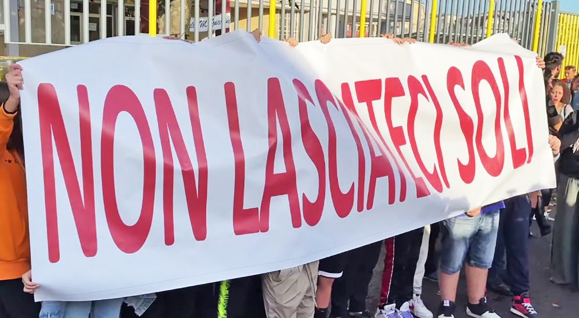 «Oggi stiamo facendo questa manifestazione, c’è tanta gente qui e domani? Cosa ci sarà?» afferma una delle mamme degli studenti della scuola media di merito che ieri hanno organizzato un sit-in davanti ai cancelli dell’istituto per chiedere più sicurezza per i propri figli dopo l’escalation di violenza che ha avuto come teatro proprio questa scuola. «Domani cosa ci sarà?», dice lasciando che l’interrogativo resti sospeso tra le mille perplessità che la vita nei quartieri dell’hinterland impone.