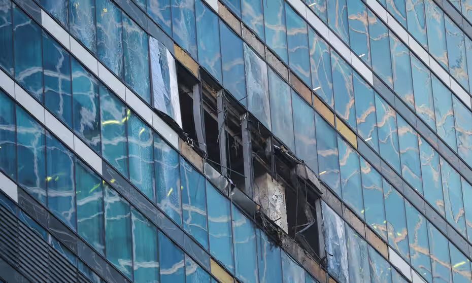 Foto e video hanno mostrato che un drone ha strappato parte della facciata di un moderno grattacielo, IQ-Quarter, situato a 5,5 km dal Cremlino. Secondo l’agenzia di stampa russa Ria-Novosti, l’edificio, colpito nuovamente martedì, ospita diverse agenzie governative.