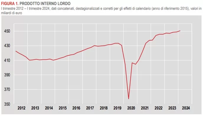 La ripresa dell’Italia in termini occupazionali ed economici è testimoniata anche dalla crescita del Pil. Come riportato dall’Istat, nel primo trimestre del 2024 il Prodotto interno lordo è aumentato dello 0,3% rispetto al trimestre precedente e dello 0,7% nei confronti del primo trimestre del 2023. Anche la crescita congiunturale del Pil diffusa il 30 aprile 2024 era stata dello 0,3%, mentre quella tendenziale era stata dello 0,6%. A tutto ciò si aggiungono gli andamenti congiunturali positivi per il valore aggiunto in tutti i principali comparti produttivi, con l’agricoltura cresciuta del 3,3% e l’industria e i servizi dello 0,3%.