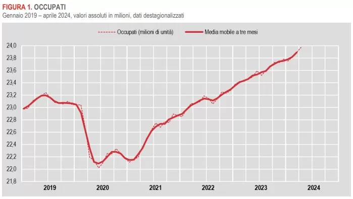 Gli ultimi dati Istat sul lavoro in Italia sono incoraggianti. Ad aprile 2024, rispetto al mese scorso, aumentano gli occupati e il tasso di occupazione sale al 62,3% raggiungendo così un nuovo record positivo. Nello specifico l’occupazione cresce per uomini e donne, per dipendenti e autonomi e per tutte le classi d’età. L’unica eccezione riguarda la quota dei 25-34enni, che invece deve fare i conti con un calo. Il numero degli occupati – che ammonta a 23 milioni 975mila – è superiore di 516mila unità rispetto ad aprile 2023, per effetto dell’incremento di 444mila dipendenti permanenti e di 154mila autonomi e della diminuzione di 82mila dipendenti a termine. Non solo: al tempo stesso diminuiscono i disoccupati, il cui tasso cala al 6,9% (-0,2 punti). Per la prima volta dopo oltre 15 anni la disoccupazione scende sotto la soglia del 7%.
