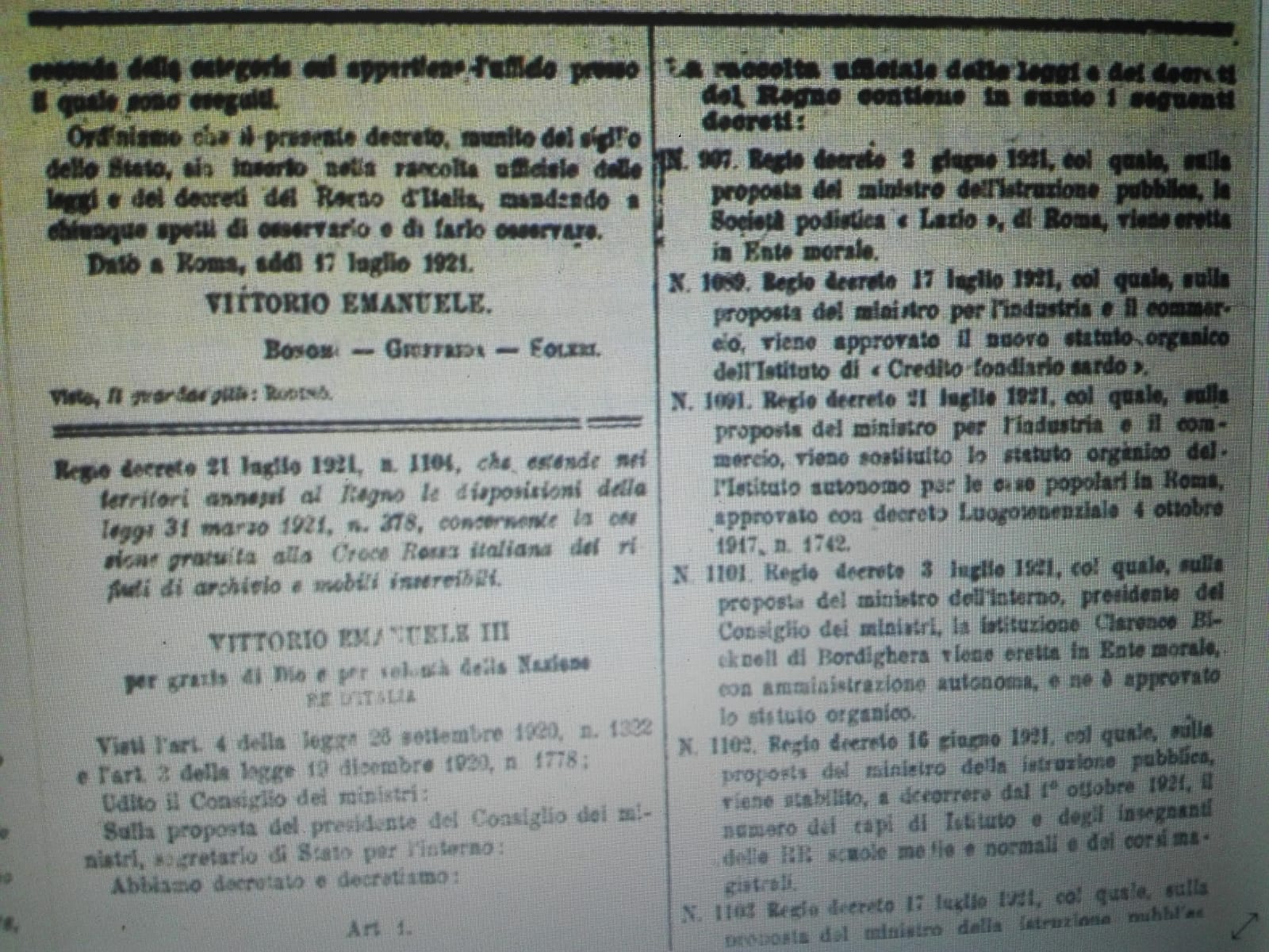Cento anni fa, il 2 giugno del 1921, la Società Podistica Lazio veniva elevata a Ente Morale. Da un Regio Decreto, il 907, per l’esattezza. Il provvedimento era figlio del grande impegno profuso dalla Lazio nell’attività fisica e, in particolare, nell’Istruzione Premilitare, che sarebbe l’antesignano dell’odierno movimento scoutistico italiano. Venne riconosciuta l’importanza dell’operato della società biancoceleste nell’ambito della preparazione della gioventù, in un Regno ancora giovane che stava cullando le proprie ambizioni internazionali, per le quali, all’epoca, la forza militare era parte imprescindibile. Lo stesso principe Umberto, erede al trono, partecipò con entusiasmo ai corsi, avvicinandosi al mondo Lazio di cui rimase poi simpatizzante e frequentatore anche negli anni a venire. L’elevazione a Ente Morale, caso più unico che raro nel mondo sportivo, fu un premio alle profonde istanze sociali e culturali che albergavano nella Lazio del tempo, specialmente nella fervida attività svolta nei locali di via Veneto, la sede sociale. Riconoscendo, al contempo, una struttura ben riconoscibile anche grazie alle sedi sportive, in particolare lo stadio della Rondinella, già adibito a orto di guerra durante il primo conflitto mondiale. Promotore del riconoscimento, l’attivissimo presidente Ballerini e l’on. Boselli, presidente onorario, primo ministro proprio nella fase cruciale della guerra.