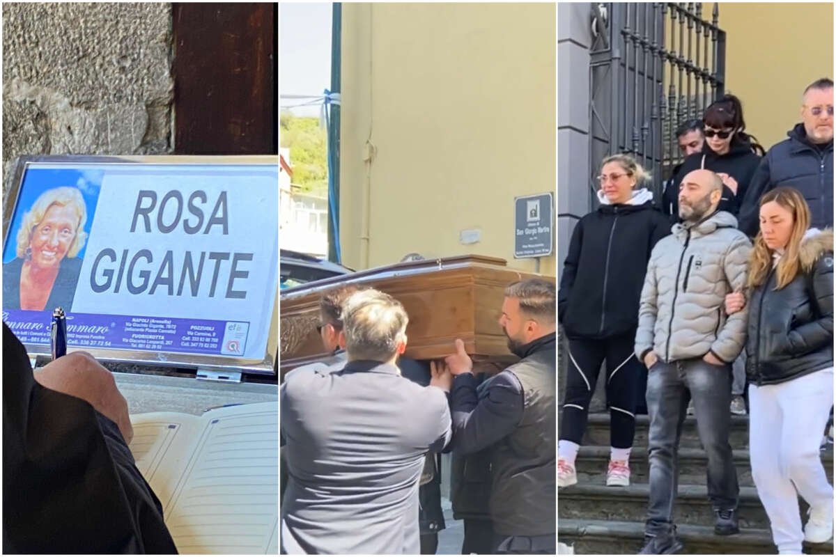 “Voglio capire perché, perché! Per quale motivo“. E’ la frase di una familiare di Rosa Gigante all’uscita dalla chiesa San Giorgio Martire di Pianura, periferia occidentale di Napoli, della bara della povera 72enne uccisa nella propria abitazione in circostanze tutt’ora da chiarire. Un ultimo saluto alla presenza di poco meno di 200 persone che hanno voluto ricordare la mamma del noto salumiere-tiktoker Donato De Caprio (titolare di “Con Mollica o senza?”), trovata senza vita nella tarda mattinata del 18 aprile scorso nella sua abitazione al piano terra in un complesso di palazzine popolari in via vicinale Sant’Aniello. Ad abbracciare la famiglia anche il maestro pizzaiolo Errico Porzio e il legale che assiste De Caprio e i suoi cari, l’avvocato Hilarry Sedu.