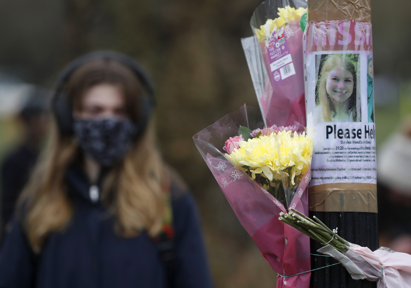 Sarah Everard è scomparsa la sera del 3 marzo, mentre camminava nel sud di Londra e rincasava a Brixton. È stata trovata morta nove giorni dopo (12 marzo), a circa 78 chilometri dall’ultimo luogo nel quale era stata vista la donna, in una zona boschiva nella contea del Kent non distante dalla casa in cui l’agente Couzens viveva con moglie e figlie. Il corpo si trovava in una borsa per lavori edili e l’identificazione è stata effettuata tramite impronte dentali.
