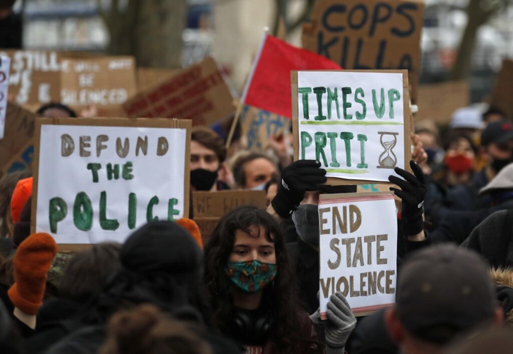 Vari video hanno mostrato gli agenti che strattonavano le presenti, le immobilizzavano a terra, ammanettandole e portandole via. Al lutto e alla rabbia per l’assassinio si è aggiunta l’accusa di azione sproporzionata delle forze dell’ordine. La vice commissaria di polizia Helen Ball ha difeso gli agenti, affermando che la folla costituiva un concreto rischio di trasmissione del virus. Ma da varie parti politiche si alzano richieste di dimissioni di Cressid Dick, direttrice di Scotland Yard. Gli agenti sono stati accolti con disprezzo dalle presenti alla veglia, visto che il presunto assassino di Everard è il 48enne Wayne Couzens, agente della stessa Metropolitan Police, rimasto in servizio nella sorveglianza armata delle ambasciate a dispetto di almeno due denunce recenti per atti osceni.