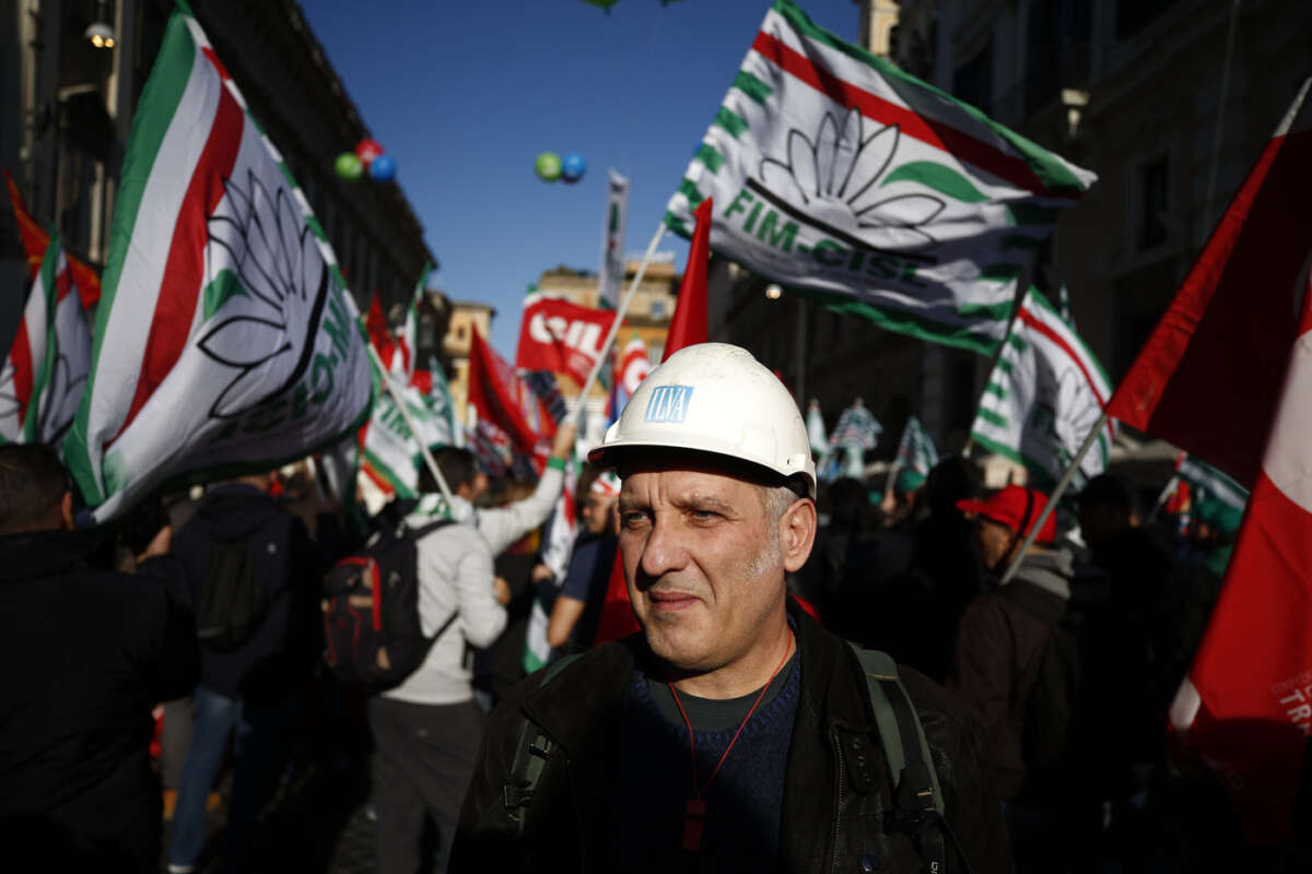 I LAVORATORI ILVA – Da Taranto sono circa un migliaio i lavoratori ex Ilva arrivati nella Capitale per partecipare alla manifestazione indetta dai sindacati, giunti dalla Puglia con venti pullman. Proprio gli stabilimenti ex Ilva sono tutti fermi: l’adesione a Taranto, spiegano i sindacati, è al 90%, a Genova e Novi Ligure all’80%, a Racconigi al 100%, adesione al 100% anche a Padova e Marghera.