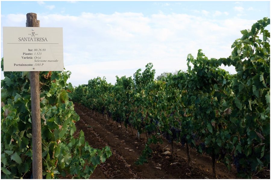 Le aziende dei Girelli sono due, Santa Tresa e Azienda Agricola Cortese, diverse per genotipi e terroir, situate a soli 8 km l’una dall’altra: qui si producono Frappato e Nero d’Avola (anche in blend come da disciplinare nel Cerasuolo di Vittoria), Carricante, Catarratto e Nerello Mascalese. Proprio dalla passione per la Sicilia di Stefano e Marina nasce l’ultimo progetto: riportare in vita l’Orisi, dopo averlo allevato con la massima cura, racconta Stefano Girelli, “in un piccolo fazzoletto della nostra tenuta esposto a Nord, dove abbiamo piantato 1523 ceppi allevati a spalliera in un terreno franco sabbioso, ricco di minerali e poggiato su uno strato di calcareniti compatte”. L’etichetta scelta per presentare questo nuovo vino è contrassegnata soltanto da una “O”. Per registrare nuovamente il nome tradizionale bisognerà aspettare i tempi della burocrazia. Nel frattempo, il vino figlio di questa varietà – un Terre Siciliane Rosso Igp – è già disponibile con l’annata 2020 in un’edizione limitata (poco più di 2mila bottiglie).
