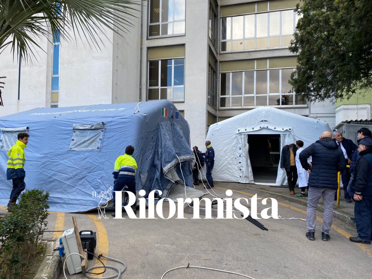 L’Ospedale Cardarelli di Napoli si sta preparando all’emergenza Coronavirus. Ormai i casi in Italia stanno aumentando e dopo quelli di Firenze e Palermo in Campania non c’è ancora alcun contagiato. Così il principale ospedale di Napoli e del Mezzogiorno si sta attrezzando. Alcune tende sono state montate questa mattina davanti al DEA per accogliere i pazienti che si recheranno al Pronto soccorso. Questo servirà a non bloccare la struttura stessa con i possibili casi del Coronavirus e l’isolamento in attesa dei tamponi ma per gestire questi casi in una “sede” già predisposta all’accoglienza di questa tipologia di pazienti. Attualmente, infatti, sono circa 6 le ore che servono all’ospedale Cotugno per analizzare i tamponi, e in quel tempo tutte le persone vanno “bloccate” causando enormi disagi.