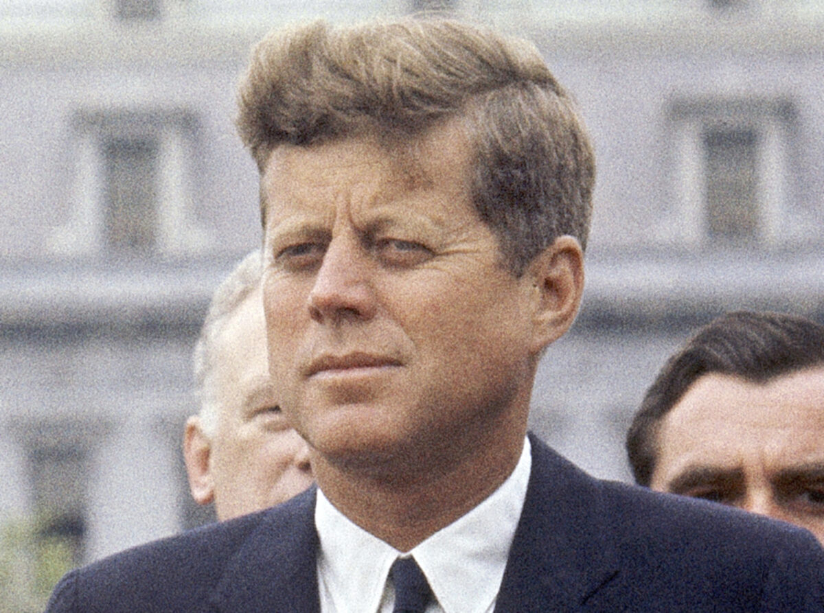 FILE - In this April 30, 1963 file photo, President John F. Kennedy listens while Grand Duchess Charlotte of Luxembourg speaks outside the White House in Washington. The National Archives has until Oct. 26, 2017, to disclose the remaining files related to Kennedy's Nov. 22, 1963 assassination, unless President Donald Trump intervenes. (AP Photo/William J. Smith, File)