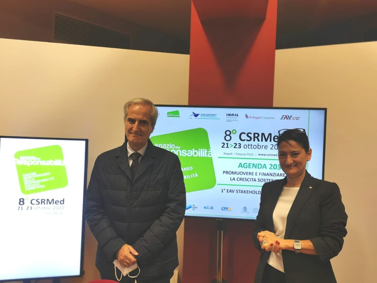 Il CSRMed è proseguito oggi sui temi dell’Agenda 2030: ambiente, persone e buona governance. I criteri ESG per riconoscere e premiare le imprese virtuose. La proposta di progetto “top 50 sostenibilità in Campania”. Agevolare l’accesso al credito per sostenere le imprese responsabili a cura di FIN.PROMO.TER. Giornata conclusa con CSRGATE, 2010-2030, 20 anni per la sostenibilità. Il giornalista Alessandro Sansoni intervista Raffaella Papa, autrice del libro che racconta la storia del CSRMed ed i risultati raggiunti, per fare poi un bilancio in piena pandemia e tracciare alcuni possibili trend per il prossimo decennio. L’ultima giornata prevede invece un grande focus sui trasporti, tema caldo a maggior ragione a causa della pandemia, con il 1° EAV stakeholder forum “Il TPL per la sostenibilità, la sostenibilità del TPL”, che sarà aperto da Umberto De Gregorio, presidente EAV srl sul Bilancio sociale 2019, le linee strategiche per il prossimo triennio.
