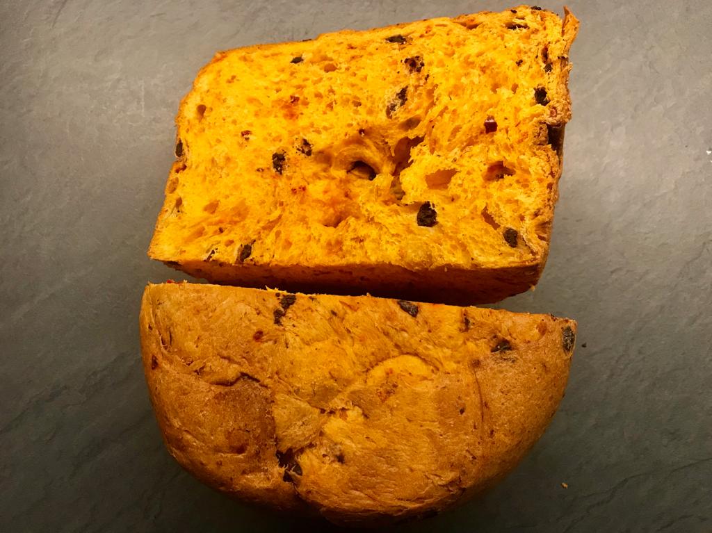 Nero d’Aspromonte, Sant’Eufemia (Reggio Calabria) – La vera scoperta di questo giro di assaggi è certamente “Rosso” il panettone che mette insieme le sensazioni e i sapori più estremi – dal dolce al salato, dal grasso al piccante – in un raffinato equilibrio. La creatività la fa da padrone. Il Rosso è un panettone imprevedibile, da lievito madre, esclusivamente artigianale, che risulta dolce, salato e piccante allo stesso tempo. L’impasto è arricchito da gocce di cioccolato fondente e da una crema di ‘Nduja di maiale Nero d’Aspromonte, animale che vive allo stato brado tra i boschi dell’aspromonte, nutrendosi di ghiande, castagne, radici e tuberi. Nel palato, Rosso avvolge con il suo intenso bouquet di aromi, in cui il dolce e il salato si spalleggiano, il cioccolato fondente dà energia ed eleganza, il piccante stuzzica i sensi.