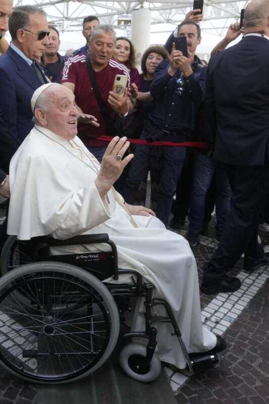 Dimesso dopo quasi 10 giorni, Bergoglio è uscito dall’ingresso principale sulla sedia a rotelle. Accolto dagli applausi, ha salutato col sorriso pazienti, familiari, sanitari e giornalisti presenti. Poi è salito a bordo della Fiat Panda bianca d’ordinanza ed tornato in Vaticano.