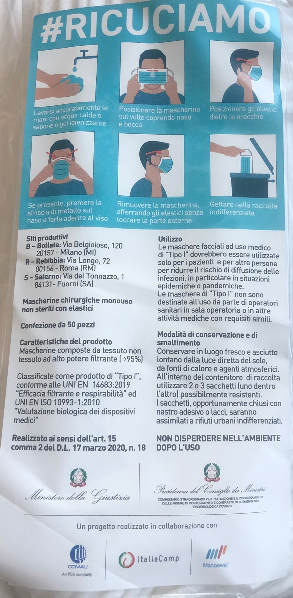 Ciambriello si è recato presso la “fabbrica di mascherine” dove 10 detenuti sono impegnati nella produzione di 500mila mascherine al mese da distribuire presso gli istituti penitenziari della Puglia, Campania, Sicilia e Calabria.