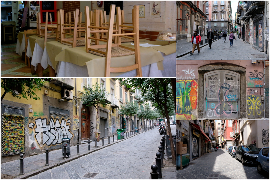 “Il centro storico di Napoli non ha senso senza turisti e studenti – spiega uno dei bottegai. – Ormai non ci sono più persone che ci abitano, sono tutti B&B, case studenti che con le Università chiuse non ci sono , chiusi i locali della movida. È un deserto”. “Non ha senso stare aperti – dice il proprietario di una pizzetteria – io potrei fare l’asporto, ma a chi? Non c’è nessuno. Allora sto chiuso così almeno risparmio i soldi delle bollette”. E intanto con spugnetta e pennello alla mano ridipinge il suo locale: “Siamo rovinati, non ho nemmeno i soldi per pagare un operaio per sistemare il negozio e allora lo faccio io”.