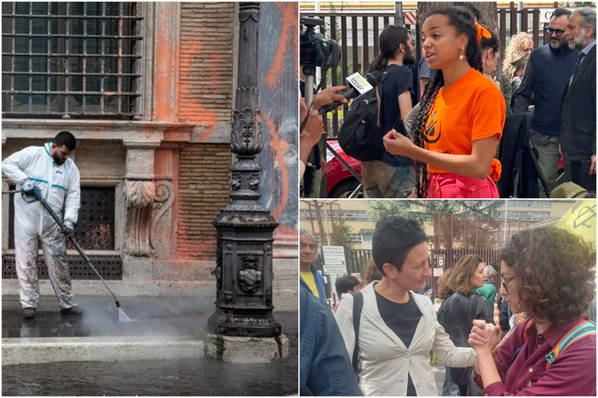 In piazzale Clodio, sede del tribunale di Roma, presente per Sinistra Italiana la senatrice Ilaria Cucchi e il segretario del partito Nicola Fratoianni oltre a Marta Bonafoni, consigliera regionale e coordinatrice della segreteria del Pd: “Capiamo la rabbia e la preoccupazione dei giovani attivisti, che protestano contro un governo a dir poco inerte di fronte alla sfida dei cambiamenti climatici. Serve investire su una reale conversione ecologica ed energetica, non criminalizzare la protesta”. Compagni che sbagliano, insomma.