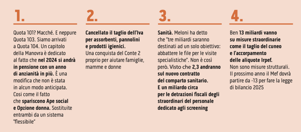 Pensioni, sanità, taglio dell’iva e coperture: nella manovra 2024 il governo si rimangia tutto