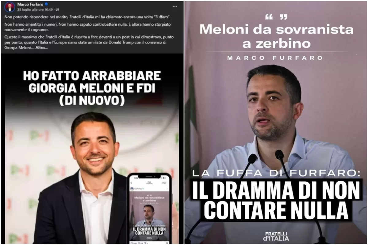 Così scrive: “Non potendo rispondere nel merito mi ha chiamato ancora una volta “Fuffaro”. Non hanno smentito i numeri. Non hanno saputo controbattere nulla. E allora hanno storpiato nuovamente il cognome. Questo il massimo che Fratelli d’Italia è riuscita a fare davanti a un post in cui dimostravo, punto per punto, quanto l’Italia e l’Europa siano state umiliate da Donald Trump con il consenso di Giorgia Meloni”.